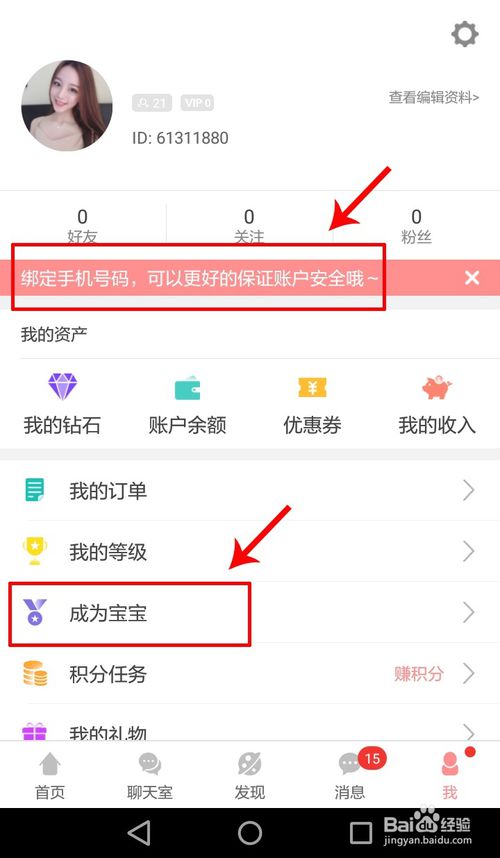 2.进来以后默认停留在首页,如下图所示。点击【我】,选择【成为宝宝】进入到资质页面。